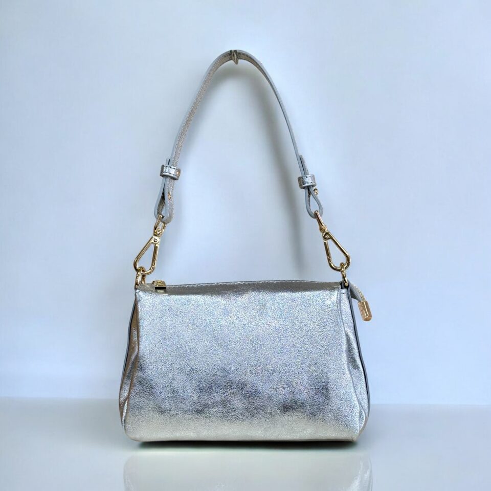 tracolla lunga regolabile in tessuto con fantasia e tracolla corta in pelle