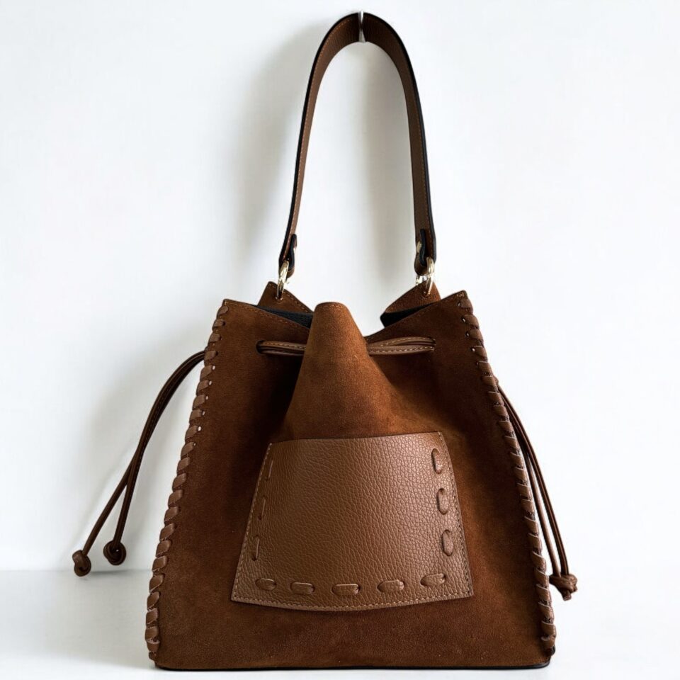 lacci in pelle laterali per regolare la misura della borsa