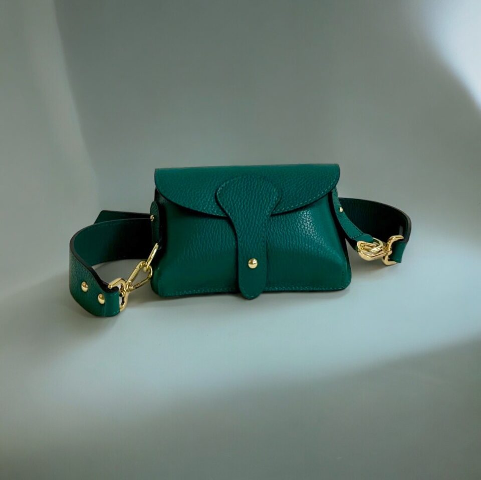 tracolla lunga regolabile in tessuto con fantasia e tracolla corta in pelle