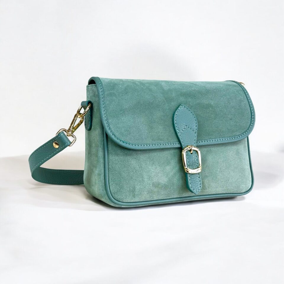 tracolla lunga regolabile in tessuto con fantasia e tracolla corta in pelle